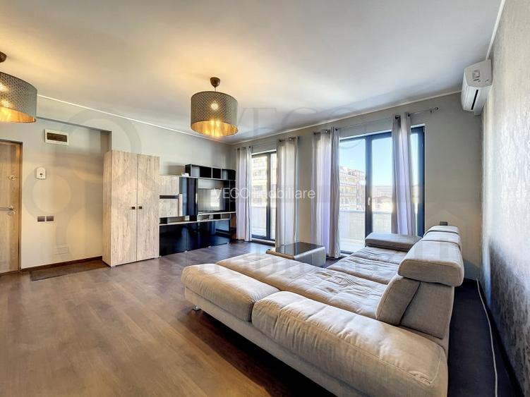 Locuinta se desfasoara pe o suprafata utila generoasa, de 93 mp, se inchiriaza complet finisata, mobilata si utilata modern, cu materiale si electrocasnice de calitate, iar in randul dotarilor mentionam pardoseala cu parchet laminat, ferestre termoizolante cu tamplarie PVC, usi interioare din lemn si usa metalica la intrare.