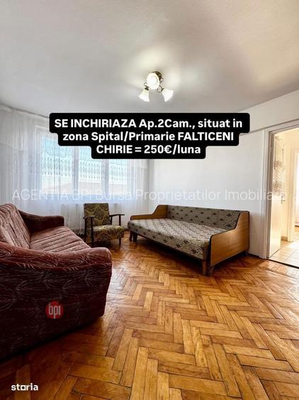 SE INCHIRIAZA Apartament cu 2 camere in zona Spital/Primarie FALTICENI