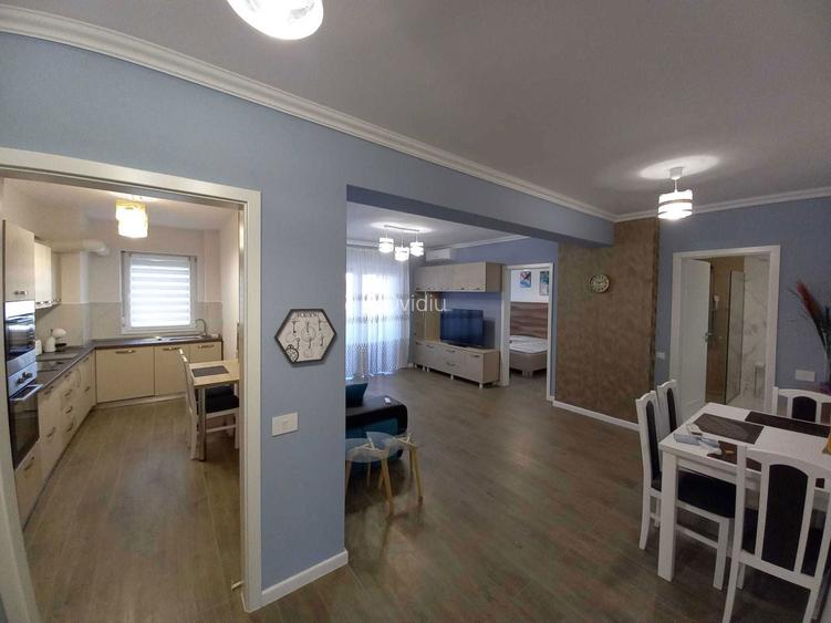 Inchiriez apartament cu 2 camere in ansamblul de blocuri Iosia Residence pe str. Onestilor. Shopping, relaxare, timp liber: Lotus Retail Park&Prima Shops si Kaufland la distanta de 100m(zeci de magazine, restaurante, cafenele, banci); magazine de cartier Lidl, Penny, Mega Image la distanta de 200 m; 100 m de parcul Coridorul Verde Barcaului(pista de alergat, pista de biciclete, terenuri de joaca, aparate de outdoor fitness); 2km de centrul orasului; 3,8km Aeroportul International Oradea . Apartamentul este amplasat la parter inalt, are o suprafata utila de 55 mp si balcon de 7,5mp si este compus din living(22,8mp), dormitor(12,9mp), hol(4,2mp), baie(6mp), bucatarie decomandata-nu open space(9,2mp). Parcare privata, 1 loc, inclusa in pret. Apartamentul este mobilat complet inclusiv pat matrimonial 180x200cm cu saltea in dormitor, canapea extensibila in living, masa 6 persoane. Electrocasnice: masina de spalat vase, plita cu inductie, hota, cuptor electric, cuptor cu microunde, frigider 240 L cu congelator, masina de spalat rufe 8kg, 2 televizoare smart de 125cm si 108cm, aer conditionat inverter 12000BTU. Dotari generale apartament: incalzire in pardoseala cu posibilitatea reglarii temperaturii dorite, rolete de aluminiu, plase anti-insecte, detectoare de fum si monoxid de carbon, internet prin fibra optica Siguranta: usa de intrare in bloc cu videointerfon, usa metalica de siguranta la apartament, sistem de supraveghere video pe casa scarii si perimetral la exterior in jurul blocului si spatiile comune Economie de energie: reglarea temperaturii interioare dorite cu termostat de ambient, contorizare individuala pentru incalzire, apa calda, apa rece, curent electric, toate corpurile de iluminat sunt echipate cu LED, ferestre termopan cu 3 foi de sticla, bloc din caramida cu termoizolatie de 10cm, bloc construit in 2022. Fumatul interzis in interiorul apartamentului! Nu sunt acceptate animale de companie! Se percepe garantie contravaloarea unei chirii. Pretul este negociabil, in functie de durata inchirierii. I rent a 2-room apartment in the Iosia Residence apartment building complex on Onestilor Street. Shopping, relaxation, free time: Lotus Retail Park & Prima Shops and Kaufland 100m away (dozens of shops, restaurants, cafes, banks); neighborhood stores Lidl, Penny, Mega Image 200m away; 100m from the Coridorul Verde Barcaului park (running track, bike track, playgrounds, outdoor fitness equipment); 2km from the city center; 3.8km from Oradea International Airport. The apartment is located on the high ground floor, has a usable area of 55 sqm and a 7.5 sqm balcony and consists of a living room (22.8 sqm), bedroom (12.9 sqm), hallway (4.2 sqm), bathroom (6 sqm), separate kitchen-not open space (9.2 sqm). Private parking, 1 space, included in the price. The apartment is fully furnished including a 180x200cm double bed with mattress in the bedroom, a sofa bed in the living room, a table for 6 people. Appliances: dishwasher, induction hob, extractor hood, electric oven, microwave oven, 240 L refrigerator with freezer, 8kg washing machine, 2 smart TVs of 125cm and 108cm, 12000BTU inverter air conditioning. General apartment amenities: underfloor heating with the possibility of adjusting the desired temperature, aluminum roller shutters, anti-insect nets, smoke and carbon monoxide detectors, fiber optic internet Security: entrance door to the block with video intercom, metal security door to the apartment, video surveillance system on the stairwell and perimeter outside around the block and common spaces Energy saving: regulation of the desired interior temperature with ambient thermostat, individual metering for heating, hot water, cold water, electricity, all lighting fixtures are equipped with LED, double-glazed windows with 3 sheets of glass, brick block with 10cm thermal insulation, block built in 2022. Smoking prohibited inside the apartment! Pets are not allowed! A deposit equivalent to one month's rent is charged. The price is negotiable, depending on the duration of the rental.