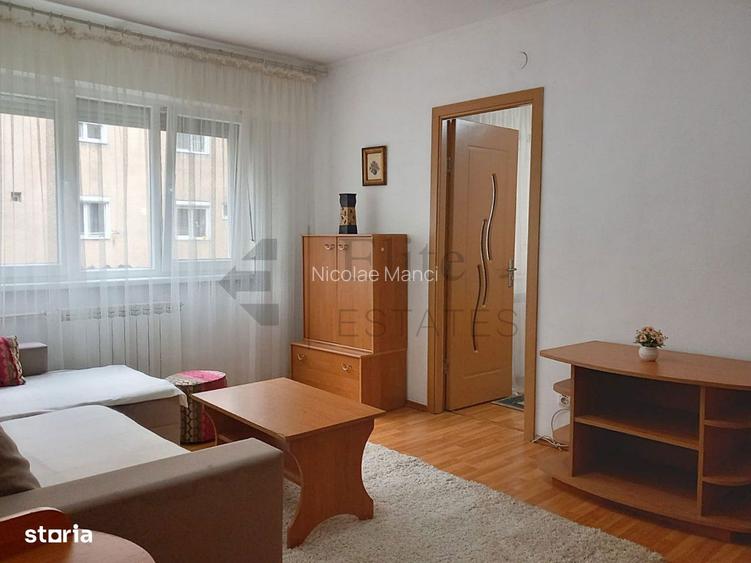 Elite Estates va propune un apartament cu 2 camere de inchiriat in Cartierul Iosia din Oradea * Locatie centrala: Str. Cazaban Alexandru * Suprafata utila: 42 mp * Etaj 1/4 * Compartimentare: Living, dormitor matrimonial, bucatarie, 1 baie cu cabina de dus, 1 hol, 1 balcon inchis * Incalzire prin reteaua de termoficare a orasului * Pret: 270 euro / luna Apartamentul este luminos, complet mobilat si utilat cu: combina frigorifica, aragaz si cuptor, cuptor cu microunde, masina de spalat haine, aer conditionat. Imobilul este dotata cu gresie si faianta, geamuri termopan cu tamplarie PVC si rolete, usi de interior din MDF si usa metalica de siguranta la intrare, interfon. Avantaje: - Zona linistita, bine conectata la oras - In apropiere de mijloace de transport in comun, scoli, gradinite, parcuri, Profi, Unicarm, Liceul Don Orione Pentru detalii privind aceasta proprietate, ne puteti contacta la: Nr. Tel.: (folosesti formularul de contact) Nicolae Manci e-mail: Pentru mai multe oferte va asteptam pe site-ul nostru: - Elite Estates offers a 2-room apartment for rent in the Iosia neighborhood of Oradea * Central location: Cazaban Alexandru Street * Usable area: 42 sqm * 1/4 floor * Partitioning: Living room, master bedroom, kitchen, 1 bathroom with shower, 1 hallway, 1 closed balcony * Heating through the city's district heating network * Price: 270 euros / month The apartment is bright, fully furnished and equipped with: fridge freezer, stove and oven, microwave, washing machine, air conditioning. The building is equipped with tiles and tiles, double glazed windows with PVC joinery and roller shutters, interior MDF doors and metal safety door at the entrance, intercom. Advantages: - Quiet area, well connected to the city - Close to public transport, schools, kindergartens, parks, Profi, Unicarm, Don Orione High School For details about this property, you can contact us at: Tel. No.: (folosesti formularul de contact) Nicolae Manci E-mail: For more offers we are waiting for you on our website: