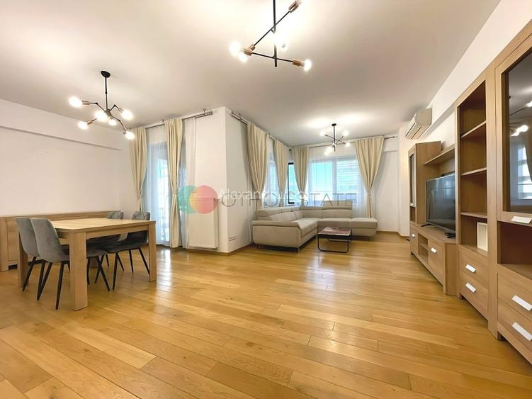 Va propunem spre inchiriere un superb apartament de 3 camere situat in zona Aviatiei, Barbu Vacarescu .Apartamentul propus spre inchiriere are o suprafata utila de 110 mp plus doua balcoane ( 30 mp ), avand suprafata totala de 140 mp. De asemenea apartamentul beneficiaza de 1 loc de parcare in subteran si o boxa generoasa.