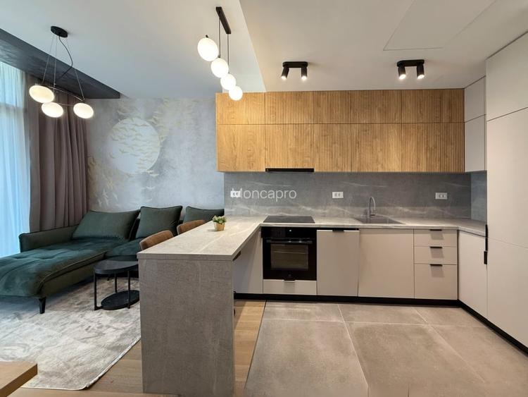 Apartamentul are aproximativ 45 mp utili, este complet mobilat si utilat, dispune de incalzire in pardoseala, aer conditionat centralizat, masina de spalat rufe si uscator. Imobilul este finalizat in 2025, iar parcarea subterana este disponibila optional.
