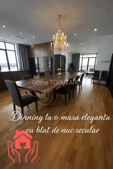bucataria NOU mobilata si utiliata conform tehnologiilor actuale (hota conectata cu plita pe inductie, combuna frigorifica dubla SAMSUNG HUB FAMILY, cuptor electric, cuptor cu microunde, masina de spalat vase de mari dimensiuni, mobilier decorativ cu leduri controlate prin telecomanda,