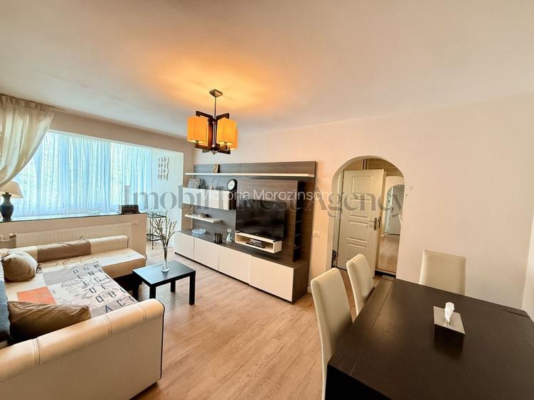 Renovat complet in 2022, cu instalatii sanitare si electrice inlocuite integral, beneficiaza de finisaje moderne: parchet laminat, gresie si faianta, usi interioare noi si tamplarie termopan.
