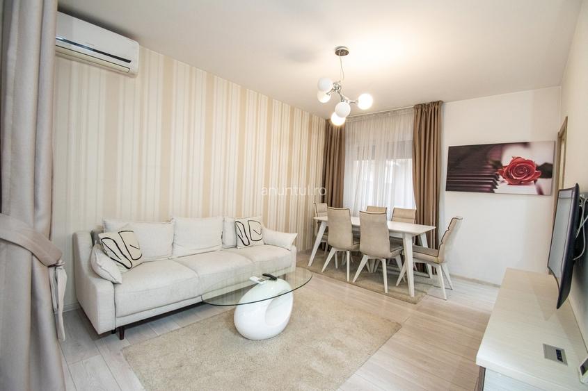 Va propunem spre inchiriere un apartament modern cu 2 camere, situat in imediata apropiere a Mall-ului Prosper, intr-o zona foarte apreciata si excelent pozitionata fata de punctele de interes ale Capitalei. Locuinta se afla intr-un bloc nou, are o suprafata utila de 57,8 mp si este complet mobilata si utilata. Printre dotarile incluse se numara: masina de spalat, aragaz, cuptor, cuptor cu microunde, precum si doua televizoare cu diagonale de 163 cm si 155 cm. Apartamentul este amplasat la un etaj superior, oferind liniste si o buna lumina naturala. La parterul imobilului se gasesc un Mega Image si o frizerie, iar statiile de transport in comun se afla la doar 2 minute de mers pe jos. In plus, Mall Prosper va pune la dispozitie sala de fitness, magazine si diverse servicii utile. Mentionam ca, fata de fotografiile prezentate, in apartament au fost realizate mici imbunatatiri, pentru a oferi viitorilor chiriasi un nivel sporit de confort. Pentru detalii suplimentare sau pentru programarea unei vizionari, va stam cu drag la dispozitie.