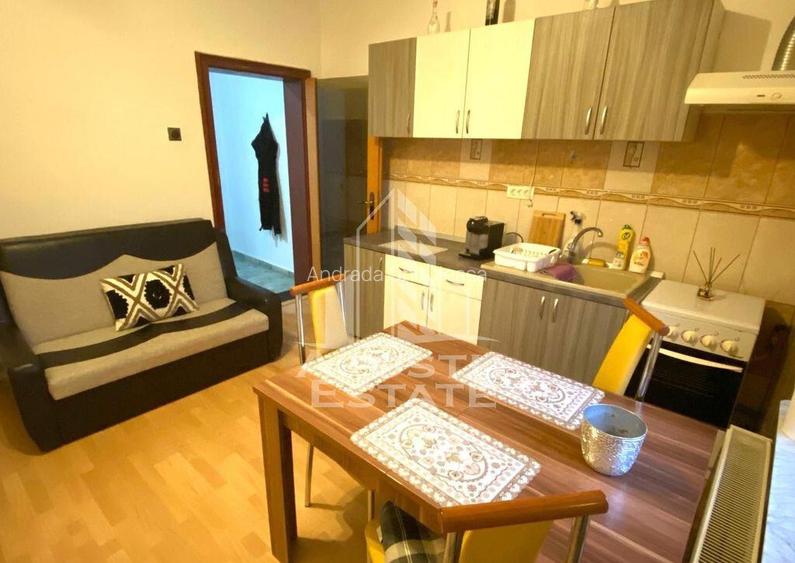 APOSTU ESTATE va propune spre inchiriere un apartament spatios , cu 2 camere, situat intr-o zona linistita si bine conectata din Timisoara, ideal pentru familii sau persoane care doresc un spatiu generos si confortabil. Suprafata utila: 65 mp Compartimentare eficienta: Hol de acces generos Bucatarie complet mobilata si utilata, cu loc de luat masa Living luminos si spatios Dormitor matrimonial mobilat Baie cu cada si geam pentru ventilatie naturala Confort si facilitati: Centrala termica proprie pe gaz Aer conditionat Apartamentul este complet mobilat si utilat Localizare: Zona Girocului liniste, acces facil spre oras, in apropiere de magazine, scoli si mijloace de transport in comun. Ideal pentru: Familii Cupluri Profesionisti care lucreaza remote sau au nevoie de birou acasa Pret chirie: 300 euro Programeaza o vizionare! ID intern: CP2809915 Confort: 2 Tip imobil: Casa/Vila Numar Bai: mai mult de 3 Posibilitate parcare: Nu Publicat prin