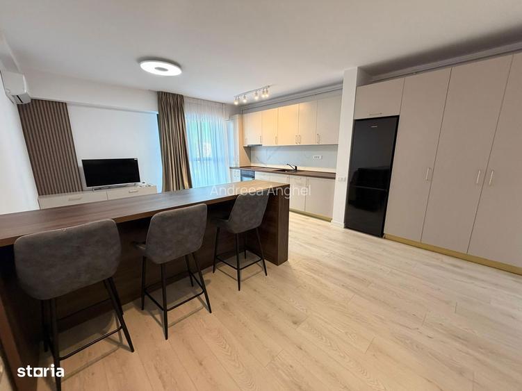 Apartament modern cu 2 camere, situat intr-un imobil nou, in zona Pipera Plaza Rond OMW, una dintre cele mai apreciate zone rezidentiale din nordul Bucurestiului. Locatia ofera acces rapid catre zonele de birouri, centre comerciale, scoli si mijloace de transport. Detalii apartament: -Suprafata utila: 56 mp + terasa de 4 mp -Etaj: 3 din 8, intr-un bloc nou, cu lift -Compartimentare practica: living spatios cu zona de dining, dormitor luminos, bucatarie complet mobilata si utilata, baie moderna -Mobilat complet, cu mobilier de calitate si finisaje contemporane -Dotat cu electrocasnice moderne: frigider, plita, cuptor electric, hota, masina de spalat rufe, TV si aer conditionat -Loc de parcare subteran contra cost - 60 Euro/Luna Facilitati si avantaje: Cladire noua, curata, cu sistem de securitate si acces controlat. Terasa ideala pentru relaxare, spatii verzi in jurul imobilului, vecinatate linistita si sigura. Localizare: Zona Pipera Plaza Rond OMW este recunoscuta pentru accesibilitate si calitatea vietii. In apropiere se afla Pipera Plaza, Promenada Mall, scoli si gradinite internationale, sedii de birouri, restaurante si centre de fitness. Acces rapid catre zona de business din Pipera, Baneasa si Barbu Vacarescu, precum si catre mijloace de transport in comun. Apartamentul este disponibil imediat si reprezinta o alegere ideala pentru o persoana activa sau un cuplu care isi doreste confort, liniste si proximitate fata de principalele puncte de interes din nordul Bucurestiului. DISPONIBIL DE LA 30.04.2026