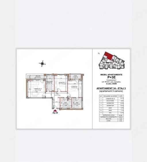Proprietar, fara comision! Apartament decomandat, 3 camere cu 2 bai si 2 balcoane plus un loc de parcare inclus. Este situat la etajul 3 3 intr-un ansamblu reziden?ial modern (vis-a-vis de Vivamus Residence, zona Rulmentul). Bloc nou, cu predare in iulie 2026: doar 43 apartamente, curte interioara amenajata, lift, holuri spa?ioase, tamplarie PVC tripan, termoizola?ie cu polistiren de 20 cm. Suprafa?a totala construita: 105,91 mp Suprafa?a utila: 83,68 mp Balcon: 4,25 mp Logie: 4,34 mp Compartimentare: Living: 19,3 mp Bucatarie: 8,87 mp Dormitor 1: 13,53 mp Dormitor 2: 15,51 mp Baie 1: 6,67 mp Baie 2: 7,14 mp Hol: 12,74 mp Vedere panoramica catre Tampa, Postavaru ?i Magura Codlei. Dotari ?i facilita?i: Incalzire in pardoseala Centrala proprie Finisaje premium Bai complet utilate Pre?: 140.000 EUR + TVA 21% ID anun? : 1774271880