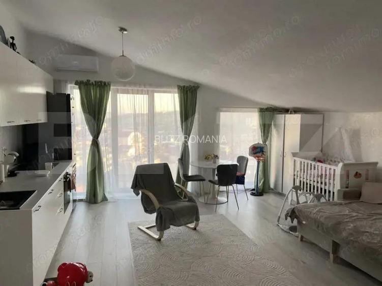 Blitz Imobiliare va prezinta un apartament cu 2 camere, situat in cartierul Mana?tur, intr-o zona lini?tita, dar bine conectata la principalele puncte de interes ale ora?ului. Cu o suprafa?a utila de 45 mp, acest apartament se afla la ultimul etaj (7/7) al unui imobil modern, oferind o priveli?te panoramica spectaculoasa asupra ora?ului ?i un ambient plin de lumina naturala. Caracteristici principale Suprafa?a utila: 45 mp Compartimentare: semidecomandata living cu trecere catre dormitor Etaj: 7 din 7 cu panorama deosebita Orientare: Est Stare: complet renovat, cu finisaje moderne ?i materiale de calitate Dotari: centrala termica proprie, geamuri termopan, parchet laminat, baie cu finisaje contemporane Facilita?i suplimentare Lift: func?ional, pana la ultimul etaj Locuri de parcare: disponibile in zona Acces securizat: interfon la intrare Spa?ii verzi: in apropierea blocului, perfecte pentru relaxare sau plimbari Zona ?i accesibilitate Localizat intr-o zona reziden?iala a cartierului Mana?tur, apartamentul ofera acces facil la o gama larga de facilita?i: Transport public: sta?ii de autobuz ?i troleibuz la cateva minute, cu rute directe spre centrul ora?ului Magazine: supermarketuri ?i magazine de proximitate la distan?a de mers pe jos Educa?ie: gradini?e, ?coli generale ?i licee in apropiere Complexuri comerciale: acces rapid catre zona Big cu diverse op?iuni pentru cumparaturi ?i servicii Zone verzi ?i de recreere: parcuri, alei pietonale ?i zone de joaca pentru copii Acest apartament este ideal pentru un cuplu, o persoana singura sau pentru investi?ie, datorita pozi?ionarii excelente ?i a finisajelor moderne. Se preda la cheie, gata pentru a deveni noul tau camin. Contacteaza-ne pentru detalii suplimentare sau pentru a programa o vizionare! Cod oferta / ID BLITZ: P145028