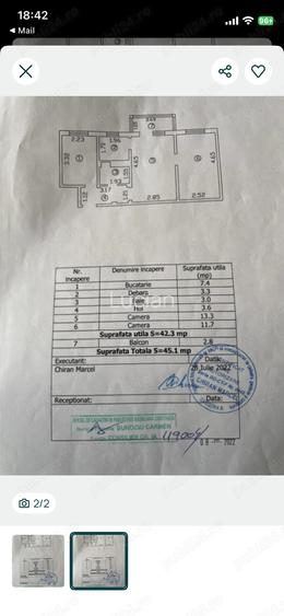 Apartament 3 cam.transformat in 2 cam,un dormitor transformat in bucatarie iar bucataria in debara.Racordat la gaz cu centrala termica de 3 ani,incadrat,f.calduros.Etaj 1 din 4,necesita renovare fiind locuit de batrani.Apartament cu s.u.-42,