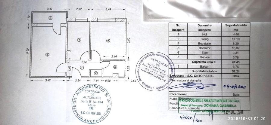 Apartament 2 camere su.52mp.et.10 din 10 decomandat Dorali Mall
