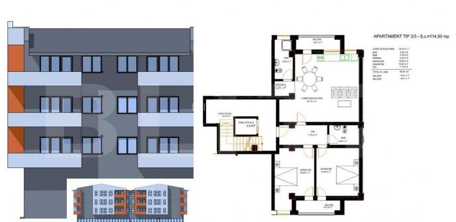 Apartament 3 camere, 93,44 mp, zona Ford