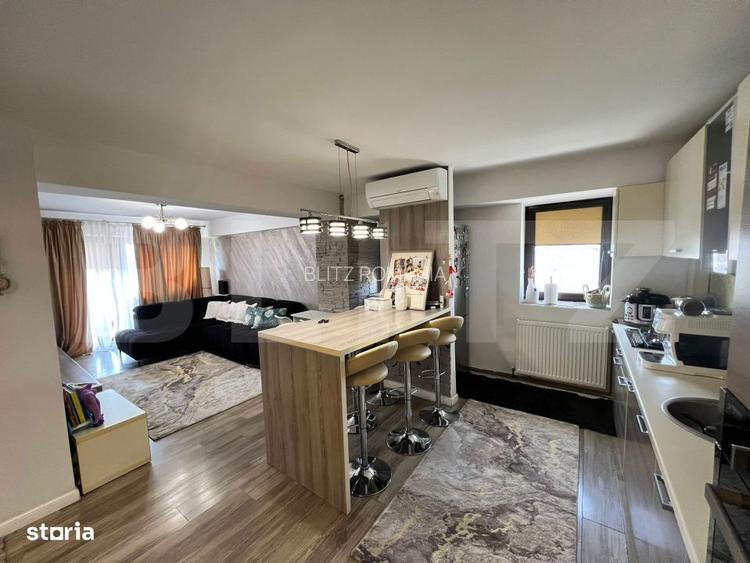 Blitz va propunem spre vanzare un apartament spatios si bine compartimentat, situat in cartierul Rovine, o zona apreciata pentru acces rapid si facilitati in imediata apropiere. Locuinta este decomandata si dispune de 2 dormitoare luminoase, un living generos cu bucatarie open-space, 2 bai, un balcon inchis si o terasa bilaterala, ideala pentru relaxare. In plus, proprietatea include o boxa la subsol, perfecta pentru depozitare. Apartamentul se vinde complet mobilat si utilat, exact ca in poze, fiind pregatit pentru mutare imediata. Beneficiaza de centrala termica proprie si aer conditionat, oferind confort pe tot parcursul anului. Este situat la etajul 4 din 4, cu acoperis izolat cu smoala, ceea ce asigura o buna protectie termica si impotriva infiltratiilor. In apropiere se regasesc numeroase puncte de interes, precum Lidl, Profi si Penny Market, ideale pentru cumparaturi zilnice, precum si Farmacia Catena. De asemenea, Piata Rovine si statiile de transport in comun se afla la doar cateva minute de mers pe jos. Zona ofera liniste si acces facil catre toate facilitatile necesare, fiind ideala atat pentru locuit, cat si pentru investitie. Pentru mai multe detalii sau programarea unei vizionari, nu ezitati sa ne contactati Cod oferta / ID BLITZ: P169757