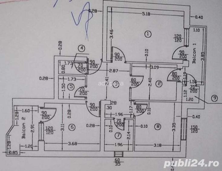 Apartament 3 camere decomandat de vanzare in Dragasani, jud Valcea, bl. T5, sc. B, et. 4. Str. Tudor Vladimirescu nr 373. Vedere dubla la str. Tudor Vladimirescu si catre curtea interioara. An constructie bloc: 1989; Structura: pereti si cadre din beton, inchideri: caramida; Dooua dormitoare, camera de zi, bucatarie, hol, doua bai, doua camari, doua balcoane. Total suprafata utila 66,08 mp. Total cu balcoane 76,29 mp. Finisaje: parchet, faianta, gresie, termopane, balcoane inchise; Incalzire: centrala termica. Acoperis. Actele la zi. Pret 61000 euro. Detali la tel. ID anun? : 1699185180