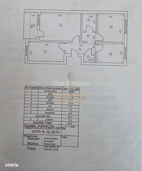 Suprafață utilă totală: 62 mp