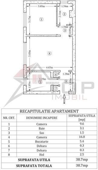 Suprafață utilă totală: 38 mp