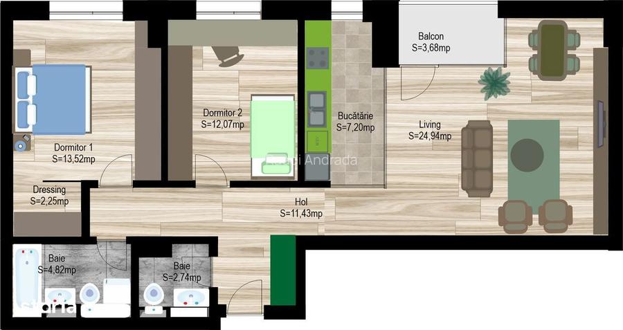 Apartament 3 camere | 79 mp | 2 bai | balcon | bloc nou Avanera