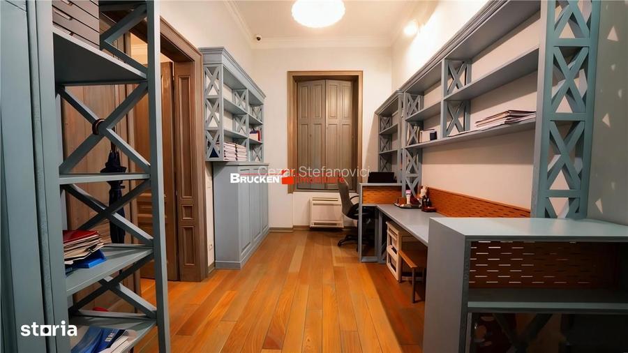 o suprafata construita de 120 mp si 92 mp utili, apartamentul a fost complet renovat, toate instalatiile fiind inlocuite, intr-o abordare care respecta caracterul cladirii si il aduce in prezent prin confort discret si finisaje atent alese.Livingul generos, de 26 mp, ofera un spatiu amplu si luminos, completat de doua incaperi ce pot functiona ca dormitoare, un birou separat, o bucatarie inchisa cu zona de dining, o baie eleganta si o boxa de 10 mp la subsol.Unul dintre cele mai valoroase atuuri ale proprietatii este orientarea catre malul Crisului Repede. Apartamentul este ferit de zgomotul bulevardului, iar deschiderea catre apa si zona verde aduce lumina naturala, liniste si o senzatie de respiro rar intalnita intr-o locatie ultracentrala. Promenada de pe malul Crisului si vegetatia matura din zona creeaza un cadru placut, care imbina viata urbana cu proximitatea naturii.Confortul este asigurat prin sistem de climatizare Daikin, existand totodata alternative de incalzire, intrucat cladirea este racordata la termoficare, iar conducta de gaz trece prin fata imobilului. Apartamentul beneficiaza de instalatie electrica premium, iluminat inteligent, sistem de securitate video si interfon smart. Bucataria este complet utilata (fara aragaz). Atmosfera interioara imbina volumetria generoasa specifica cladirilor istorice cu un aer clasic reinterpretat intr-o nota contemporana.Imobilul se afla in imediata apropiere a Facultatii de Medicina, a Colegiului National Emanuil Gojdu, la cateva minute de Piata Unirii, de linia de tramvai si de Parcul 1 Decembrie. In fata cladirii exista locuri de parcare publice.Exista, de asemenea, posibilitatea achizitionarii unei a doua unitati in acelasi imobil, ideala pentru cei care isi doresc locuinta si spatiul profesional in acelasi loc sau pentru investitie (inchiriere pe termen lung ori regim hotelier, cabinet de avocatura, notariat, arhitectura, psihologie sau alte profesii liberale). Aceasta necesita renovare completa, oferind libertate deplina de amenajare.Este o proprietate adresata celor care apreciaza cladirile cu istorie, proportiile generoase si linistea oferita de orientarea spre Cris, intr-una dintre cele mai consacrate zone centrale ale Oradiei.