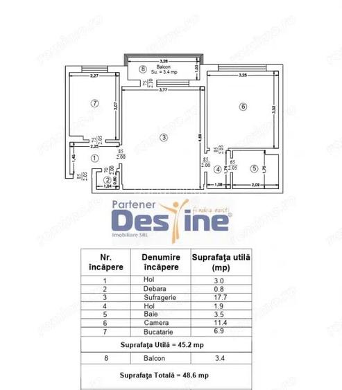 DESTINE IMOBILIARE va prezinta pentru vanzare: Apartament 2 camere 48.6 mp SEMIDECOMANDAT Etaj 3/4 Zona Deal, ultracentral, Pa?cani PRE?: 48.000 (negociabil) DETALII DESPRE PROPRIETATE: -Suprafa?a: 48.6 mp -Compartimentare: semidecomandata, 2 camere spa?ioase -1 balcon spa?ios -Apartament uscat, fara scurgeri sau infiltra?ii -Apartament IZOLAT -Scara curata cu INTERFON -Necesita RENOVARE LOCA?IE: -Ultracentral, intre Biblioteca ?i Casa de Cultura din Pa?cani -Zona Deal, aproape de magazine, ?coli, mijloace de transport -Acces facil catre toate punctele importante din ora? VINO LA VIZIONARE: Contact: Danu? Ilinca