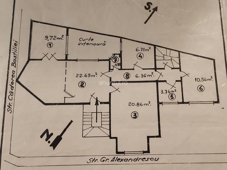 apartament 4 camere vila interbelica, Dorobanti De vanzare un apartament de 80 mp utili, aflat la etajul 1 al unei vile interbelice solide (1930), pe Strada Grigore Alexandrescu, foarte aproape de Calea Dorobanti. Zona e linistita, dar aproape de tot ce conteaza: restaurante, magazine, transport, sedii de birouri. Apartamentul are 4 camere, 2 bai, hol si doua spatii mici de depozitare. Este luminos, cu intrare separata, unele elemente originale pastrate, iar instalatiile electrice si sanitare sunt schimbate. Are centrala proprie, AC, termopane si utilitati contorizate separat. Cladirea are putini vecini (S+P+2+M) si este bine intretinuta. E potrivit atat pentru locuit, cat si pentru birou sau activitati comerciale pozitia si stilul vilei se preteaza excelent. Risc seismic: Clasa U2, expertizat 1993.