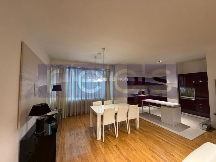 Zona de zi este definită de un living spectaculos, luminos și foarte spațios, cu tavane înalte care amplifică senzația de volum și eleganță. Bucătăria este integrată într-un concept open-space, creând un spațiu modern și primitor, ideal pentru momentele petrecute alături de familie sau prieteni, însă proiectarea apartamentului permite cu ușurință închiderea acesteia pentru cei care preferă o delimitare clasică a spațiilor.