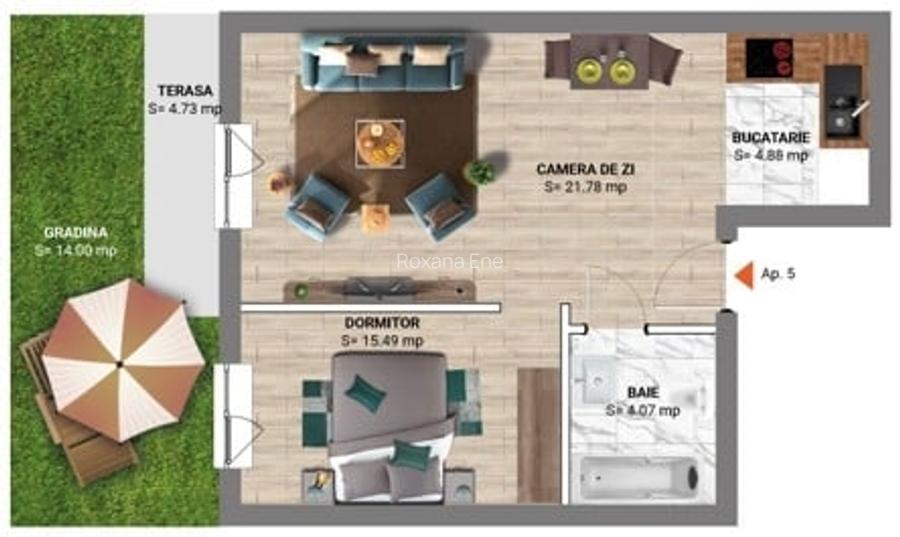 Ultimul studio parter cu gradina, bloc finalizat Padurea Baneasa