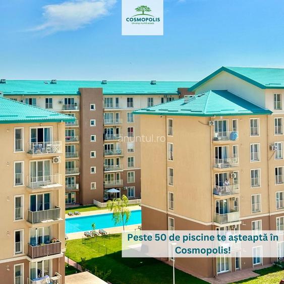 Apartament de 3 camere situat intr-un bloc dat in folosinta in anul 2024, cu regim scazut de inaltime in Cartierul Cosmopolis. Locuinta cu pozitie de exceptie, orientata catre nord si cu vedere spectaculoasa spre piscina. Apartamentul este decomandat, compus din: hol la intrare cu acces catre toate camerele, living cu acces la terasa, bucatarie inchisa, dormitor si baie Pretul nu contine TVA