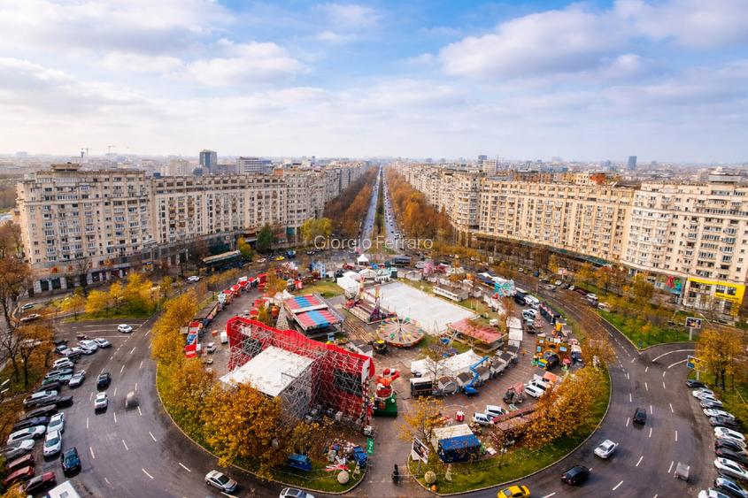 Piața Alba Iulia cu vedere pe Bulevardul Unirii până la Casa Poporului