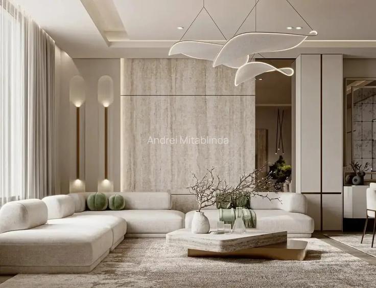 Apartamente complet finisate cu materiale de top: încalzire Uponor, ferestre Salamander, usi Pinum, instalatii Gewiss / Legrand, sanitare Grohe/Roca, videointerfon, AC, lift Schindler.