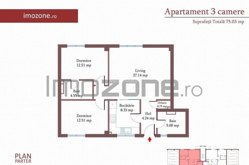 3 camere cu CURTE si PARCARE proprie, 75 MP, FINISAT MODE...