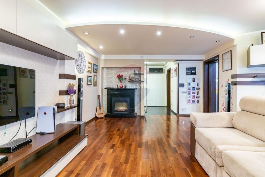 Deși este încadrat ca apartament cu 3 camere, experiența locuirii este cea a unei locuințe ample, cu proporții generoase, echilibru și confort, iar suprafața este comparabilă cu cea a unui apartament de 4–5 camere. Aici nu se simte deloc viața la bloc, ci intimitate, liniște și o continuitate firească între spații, rar întâlnită în locuințele urbane.