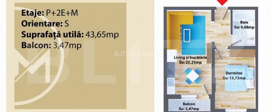 Apartament 2 camere, 43,65 mp, nou, Zona Ipotesti
