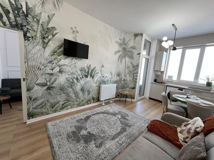 Apartamentul este finisat cochet, cu un design modern și armonios, și se vinde complet mobilat și utilat, gata de mutare. Zona de zi este open-space, cu living și bucătărie, iar spațiile de depozitare sunt eficient gândite, inclusiv un dulap încorporat pe hol. Un plus major al acestui apartament este înălțimea generoasă a pereților, de 3,10 m, care oferă o senzație de spațiu, lumină și aerisire, amplificând confortul și eleganța locuinței.
