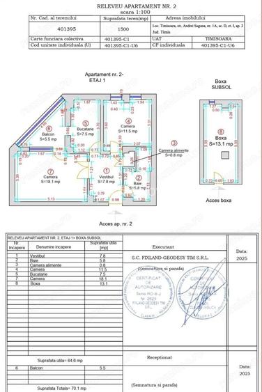 Vand apartament cu 2 camere 64 mp utili, etaj 1, balcon pe col? + boxa inalta inscrisa in CF