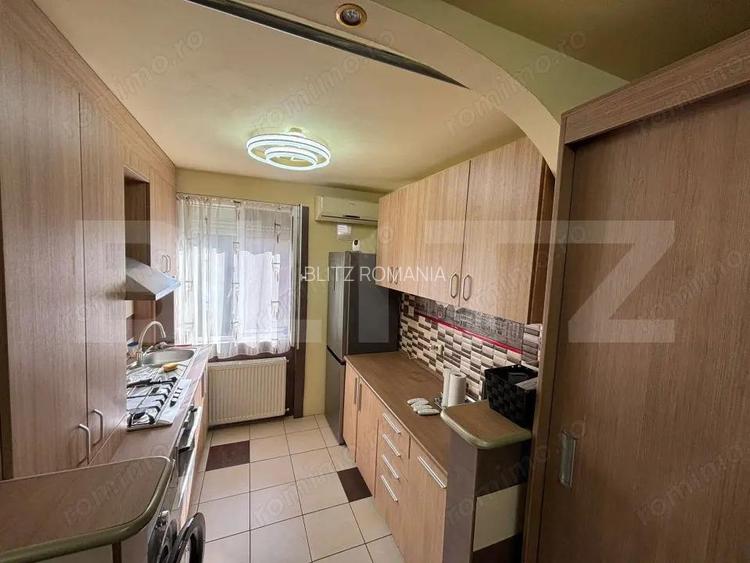De vanzare apartament cu 3 camere, situat la etajul 3 al unui bloc din zona Take Ionescu- Punctele Cardinale, intr-o zona semicentrala, bine conectata la toate punctele de interes ale ora?ului. Apartamentul are o suprafa?a utila de 70 mp ?i este compartimentat eficient, astfel: 2 dormitoare living luminos bucatarie cu zona de servit masa baie Imobilul se vinde complet mobilat, fiind gata pentru mutare imediata. Este dotat cu aer condi?ionat, geamuri termopan, parchet in camere ?i gresie in zonele de trafic ?i baie. Un avantaj important il reprezinta boxa de la subsol, cu o suprafa?a de aproximativ 2 mp, ideala pentru depozitare. Loca?ia excelenta, compartimentarea practica ?i faptul ca se vinde mobilat fac acest apartament potrivit atat pentru locuin?a personala, cat ?i pentru investi?ie. Cod oferta / ID BLITZ: P164104 ID anun? : 1770822826