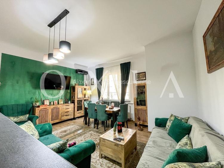 Apartamentul se afla intr-o cladire istorica, cu inaltime impresionanta de 3 m, avand spatii generoase, lumina naturala din plin si un farmec aparte dat de detaliile arhitecturale originale.