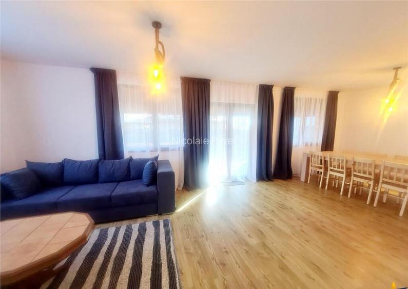 Comision chirias: 50 % tva, din contravaloarea unei chiri lunare, o singura data Ascendent Imobiliare Va propune spre inchiriere o vila moderna, situata intr-o zona linistita de case din Sanpetru, ce ofera confort, spatiu si intimitate, la doar 10 minute de Brasov. Va invitam sa experimentati o vizionare initiala, din locatia unde va aflati, chiar acum, prin accesarea turului virtual tridimensional: my.matterport.com/show/?m=H86DiL85mpo Constructie noua (2018), recent mobilata, nelocuita, cu o suprafata utila de 110 mp, casa este luminoasa, calduroasa si foarte bine izolata termic. Compartimentare: Parter: Hol generos Living spatios de 30 mp Bucatarie mobilata si complet echipata Baie cu cabina de dus, aerisire naturala Spatiu de depozitare Garaj spatios Camera tehnica Etaj: 3 dormitoare (2 cu pat matrimonial) Baie cu cada si aerisire naturala Exterior: Curte de 500 mp cu gazon ingrijit Terasa acoperita de 30 mp, ideala pentru seri relaxante alaturi de prieteni, la un pahar de vin sau o limonada Avantaje suplimentare: incalzire in pardoseala Izolatie termica eficienta: polistiren exterior 10 cm vata bazaltica interioara 10 cm Zona exclusiv rezidentiala, foarte linistita, Infrastructura excelenta. Aproape de puncte comerciale, scoli, supermarketuri. Acces rapid catre Brasov. Pentru mai multe detalii sau programarea unei vizionari, nu ezitati sa ne contactati! Consilieri dedicati acestei oferte: Nicolaie Pavel Tel/Whapp