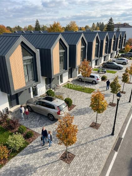 Scandinavia Residence" este un ansamblu rezidențial de case înșiruite P+1E cu circuit închis, echipat cu: