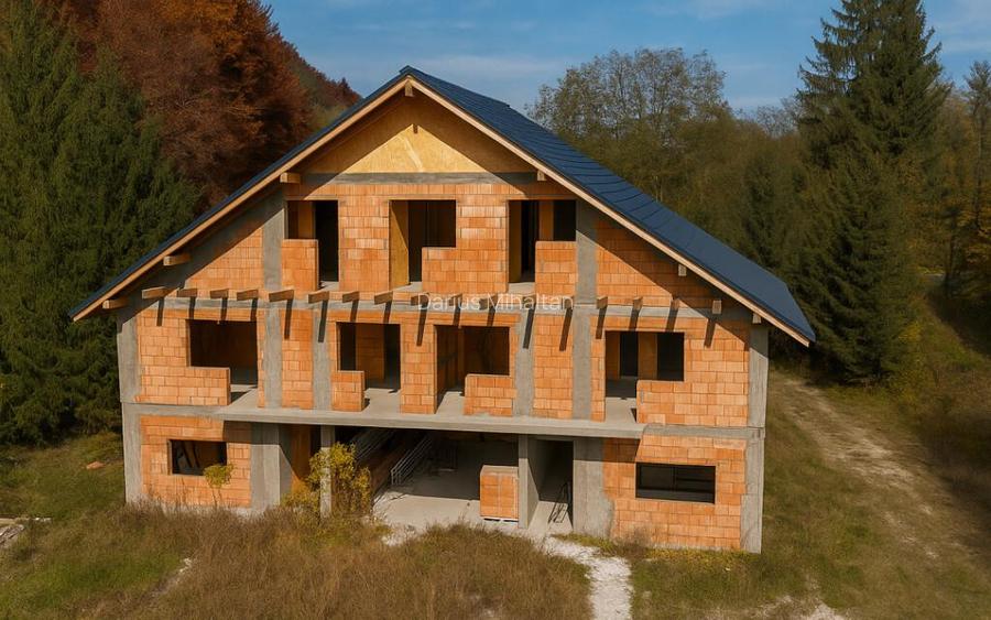 Smart Imobiliare vinde o pensiune la rosu, compusa din bucatarie, loc pentru restaurant, terasa si 16 camere, fiecare dotata cu baie proprie si iesire pe balcon. Proprietatea include un teren de 1 hectar, cu o priveliste impresionanta asupra muntilor si dealurilor din jur. Terenul dispune de o poiana si este traversat de un rau, oferind un farmec natural deosebit. Cladirea este la rosu, cu instalatia electrica pregatita si compartimentarile realizate. Zona este linistita si mirifica, ideala pentru dezvoltarea unei afaceri turistice. Proprietatea poate fi transformata intr-o pensiune confortabila pentru turisti, un retreat de wellness sau un complex pentru evenimente private si corporate. Terenul poate fi amenajat cu zone de relaxare, gradini si spatii pentru activitati recreative. Pentru mai multe detalii, informatii si vizionari sunati agentul si precizati la telefon ca ati vazut oferta cu ID P15522! Pretul de promovare este de 455.000 /negociabil in functie de conditiile stabilite impreuna cu proprietarul. Pentru mai multe detalii despre aceasta proprietate si pentru programarea unei vizionari, va rugam sa contactati consultantul responsabil. Smart Imobiliare va ofera consultanta completa pe tot parcursul tranzactiei, de la prima vizita si pana la predarea cheilor. Id intern: P15522 Numar Bai: 17 Comision cumparator: 2% Nr. locuri parcare: 5-10 Curent Apa Publicat prin