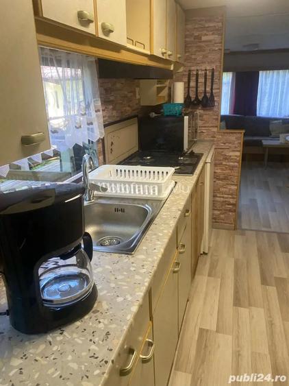 Casa mobila , perfecta pentru locuin?a de vacan?a in orice loca?ie. Nu necesita autoriza?ie de construire. Se transporta pe trailer. La cerere intermediem transportul. Casa este la cheie, complet echipata pentru a locui imediat in ea. Componenta casei este: -2 dormitoare, unul cu pat dublu, unul cu doua paturi ?i un pat suspendat pentru copii. -sufragerie cu col?ar ?i loc de luat masa, ?emineu pe gaz -bucatarie complet utilata cu aragaz, chiuveta, frigider, spa?ii depozitare -baie renovata ?i modernizata, cu lavoar, wc, cabina du? Casa este echipata cu instala?ii sanitare, apa rece ?i apa calda cu yunkers pe gaz, instala?ii electrice. Trebuie doar conectata la re?eaua de la locul amplasarii. Pe jos este izolata ?i parchet laminat. La cerere se poate vinde ?i terasa exterioara a?a cum se vede in fotografii. ID anun? : 1753530591