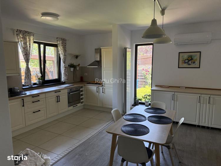 Aceasta casa individuala cu 5 camere are o suprafata utila de 110 mp si este gata sa te muti in ea. Teren 600mp. Construita in 2011, dispune de incalzire centrala pe gaz. In plus, beneficiaza de aer conditionat si are panouri solare - statut de Prosumator - inclusiv statie incarcare masina