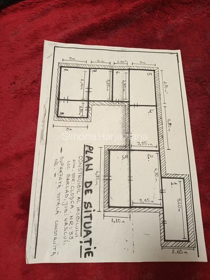 Vand casa in Barlad Cartier Munteni Str.Closca compusa din 6 camere ,baie,bucatarie ,beci ,?i 2 holuri din chirpici cu apa,canal,gaz,curent 250M2 suprafa?a totala .Pret 70.000E. Telefon ID anun?