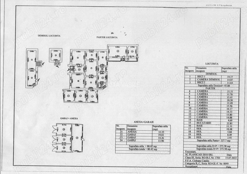 Teren aferent 1577 mp, din care -Locuinta principala supraf.utila 273.58 mp, avand la parter 10 camere, 1 bucatarie, 2 bai, 4 holuri.Demisol - 2 beciuri, 1 camera depozitare. ANEXA - supraf utila 80,42 mp avand 3 garaje ?i 1 magazie. Spatiu depozitare lemne 2 buc x 16 mp fiecare. Panouri fotovoltaice 8 buc cu invertor de 5 KW, Panou apa calda menajera, 8 sobe teracota, 3 boilere apa calda, Sistem supraveghere video, fantana proprie + alimentare de la re?ea, canalizare, Spa?iu pentru crescut pasari ?i porci, solar Detalii la tel. sau la vizionare pentru cei interesa?i. O parte din spa?iu are condi?ii pentru amenajare spa?iul comercial. ID anun? : 1721559990