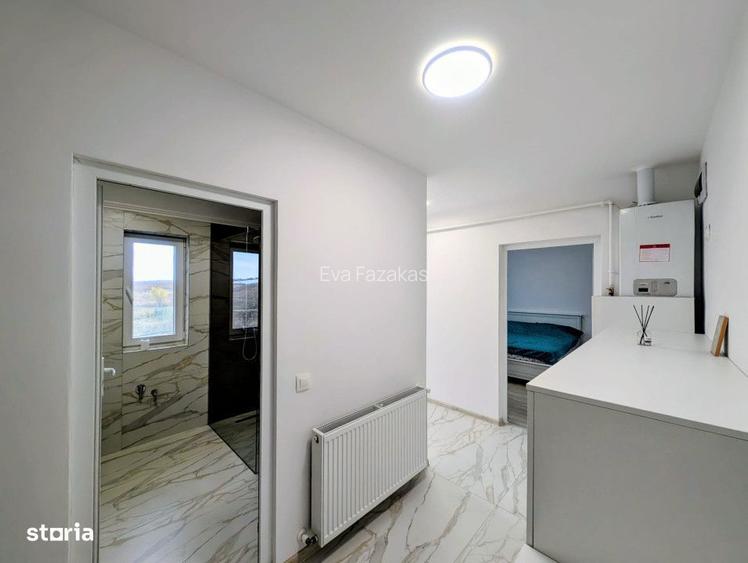 Exista locuri unde te muti pentru ca ai nevoie de un acoperis, si exista locuri unde te muti pentru ca vrei sa respiri. Daca cauti acel sentiment de libertate, unde privirea nu ti se opreste in gardul vecinului, ci fuge departe peste dealurile line din Paleu, aceasta casa finalizata in 2024 este invitatia ta la un nou inceput.Arhitectura luminii si a spatiului - Inca de la prag, casa te surprinde cu o eleganta moderna si aerisita. Inima locuintei este bucataria spectaculoasa, cu o inaltime de 5 metri, care ofera o senzatie de maretie si libertate pe care putine case o au. Cei 88 mp utili sunt ganditi sa te imbratiseze:Zona de zi: Un living inundat de lumina, care te cheama parca spre terasa acoperita de 36 mp locul unde cafeaua de dimineata are gust de liniste.Zona de noapte: Doua dormitoare primitoare si o baie moderna, toate finisate in culori neutre, pregatite sa devina panza ta alba pentru