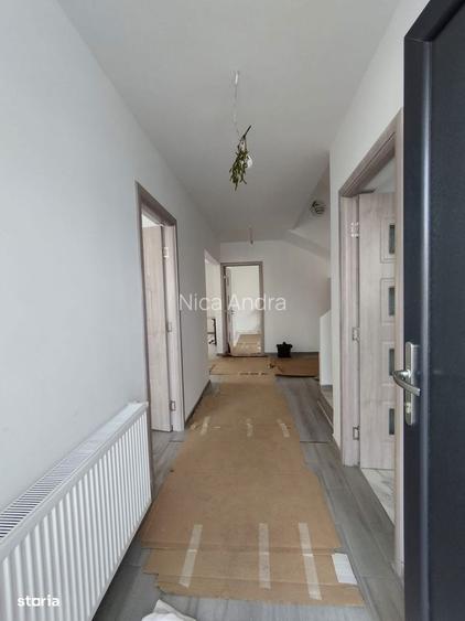 Va propunem spre vanzare o casa individuala, construita in 2023, cu regim de inaltime P+1, situata intr-o zona linistita, civilizata, cu acces facil catre punctele de interes din zona.160 mp utili350 mp teren, beneficiind de deschidere la drum public asfaltat, cu iluminat publicCompartimentarea este generoasa si bine gandita, la parter si etaj regasim 5 camere, dintre care:dormitor matrimonial de 25 mpdormitor de 20 mpdormitor de 17 mpdormitor/birou de 15 mpliving spatios de 29 mpbucatarie inchisa de 15 mp3 grupuri sanitareterasa de 20 mpcamera tehnicaProprietatea dispune de curte amenajata, precum si de suficiente locuri de parcare: 2 locuri in interiorul curtii si 3 locuri in