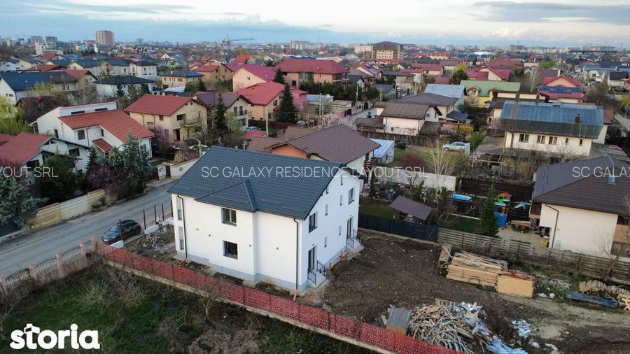 Case 4 Camere Bragdiru Granita cu Bucuresti Galaxy Residence & Layout va prezinta o oportunitate imobiliara de exceptie: casa individuala lipita la calcan P+1+Pod inalt (3,2 m) cu 4 camere, avand o suprafata construita de 148 mp si teren de 250 m.p./unitate Proprietatea este excelent pozitionata pe strada Dantelei, foarte aproape de limita cu Bucuresti, pe unul dintre ultimile terenuri construibile, la doar 100 de metri de statia STB. Constructia este realizata pe structura de cadre de beton armat cu zidarie din caramida. Vila se remarca prin suprafete vitrate extraordinar de mari ce asigura luminozitate naturala pe tot parcursul zilei. Tamplaria PVC este de tip tripan. Suprafete:Suprafata totala parter si etaj: 148 mp si 246 m.p. terenCompartimentare:La parter AVEM CEL MAI MARE LIVING DIN ZONA, in suprafata de 43 m.p., bucatarie inchisa in suprafata de 12 m.p. cu acces catre terasa din spate si o baie de 6 m.p.Etaj: 3 Dormitoare, 17, 14 si 12 m.p., o baie generoasa in suprafata de 6 m.p. si balcon.Pod Inalt, 3 metri cu posibilitatea de mansardare in viitor. Casele se vand racordate la toate utilitatile: apa si canalizare de la retea, gaz, curent, cablu si interent de la DIGI. Unicitatea acestor proprietati este data de amplasarea pe strada Dantelei care-i cea mai cunoscuta strada din Bragadiru fiind chiar la limita cu Bucuresti, este recent modernizata iar aceasta este una dintre ultimile oportunitati de a achizitiona o locuinta pe aceasta strada, intrucat mai sunt doar 3 terenuri libere pentru constructii rezidentiale pe aceasta strada. In zona afla Scoala Pro Ingenio, recunoscuta ca fiind una dintre cele mai bune unitati de invatamant din Romania, gradinita de stat ultramoderna pe strada Coralului, scoala de stat in constructie pe strada Toamnei, cresa si gradinita pe strada Cactusului. In proximitate mai gasiti: supermarketuri (Lidl, Mega Image, Penny), restaurante, centre spa, clinici medicale, o multitudine de servicii si faclilitati diverse, precum si acces rapid catre Bucuresti (Ghencea, Drumul Taberei, Metrou Raul Doamnei, Valea Oltului, Bulevardul Timisoara, Bulevardul Valea Larga, Militari, Centura Bucuresti, Autostrada de Centura Bucuresti). Amplasarea strategica ofera o alternativa premium pentru cei care cauta locuinte in zone precum: Bragadiru, Drumul Taberei, Ghencea, Valea Oltului, Domnesti, Clinceni, Magurele, Berceni sau Cornetu. Pretul afisat include TVA.COMISION 0% Se accepta si credit bancar, iar noi va oferim consultanta financiara pentru alegerea celei mai bune oferte de creditare, printr-un broker cu peste 15 ani de experienta in domeniu. De asemenea va oferim tot know-haw-ul nostru si al partenerilor nostri in alegerea celor mai bune solutii, fie ca vorbim de: mobila, electrocasnice, panouri fototvoltaice, pompe de caldura, alegerea finisajelor de calitate si design interior. Suna acum si programeaza o vizionare pana nu e prea tarziu! Proprietatile de calitate se vand foarte repede!