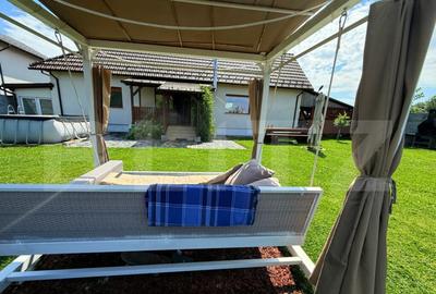 Comision cumparator: 0%. ASCENDENT IMOBILIARE recomanda spre vanzare o proprietate moderna, finalizata, pe segmentul LUX, din ansamblul Diferit Haus, Cristian, dispusa pe P+E, cu o suprafata de 114 mp utili si 500 mp teren, situata in acest cartier exclusivist, care confera prin natura arhitecturii implementate, a executiei lucrarilor si a comunitatii create, o multime de beneficii ale unei vieti de calitate. Designul intregului cartier a fost inspirat de privelistea catre peisajul montan care se diferentiaza prin unicitatea zonei, dar si de stilul de viata care se doreste a fi si transmis catre viitorii proprietari. Casa este proiectata pe doua niveluri si include urmatoarele: - la etaj: trei dormitoare, din care unul matrimonial cu baie proprie si acces pe balcon, inca o baie care deserveste celelalte doua si hol, - la parter: un living generos, cu expunere spre terasa, baie de serviciu, hol de acces, scara interioara si o bucatarie ampla, luminoasa, complet mobilata si utilata, cu zona de dinning si spatii inteligent compartimentate pentru a oferi posibilitati multiple. Proprietatea detine o suprafata vitrata suficient de mare, astfel incat lumina naturala si energia pozitiva sa predomine. Amenajarea interioara a fost creata cu bun gust, pentru a da nastere unui mediu ambiant placut, cat mai confortabil, depasind si cele mai exigente asteptari. Completeaza oferta faptul ca se beneficiaza de un foisor pentru momentele cu cei dragi, ce detine baie proprie si spatii de depozitare, terasa acoperita, tamplarie Salamander cu 3 foi, incalzire in pardoseala pe toata suprafata utila, centrala termica Viessmann, masina de spalat rufe, masina de spalat vase Bosch, uscator, hota profesionala, cuptor electric, combina frigorifica incorporabila Samsung, TV living Smart QLed, diagonala de 165 cm, lada frigorifica in foisor marca Whirlpool de 200 l, sistem de alarma si supraveghere si multe altele pe care le veti regasi la vizionare. De apreciat faptul ca toata curtea este imprejmuita perimetral cu 61 de tuia de 3,5 m inaltime, oferind intimitate si stare de bine, detine sistem automatizat de irigatie, peisagistica si un intreg cadru boem. Imobilul se vinde mobilat-utilat complet si dispune de toate utilitatile: gaz, curent, apa, canalizare, internet cu fibra optica si iluminat public cu LED. Spatiile largi, terasa si curtea generoasa, contureaza locul perfect pentru a va relaxa si a crea amintiri alaturi de cei dragi, evidentiind notiunea de ACASA. Se remarca si prin apropierea de toate punctele de interes local precum magazine, statii RATBV, gradinita, scoala, primarie, clinica, etc. Pretul nu impune TVA, casa fiind pe persoana fizica. Consilier dedicat acestei oferte: domnul George Mosor