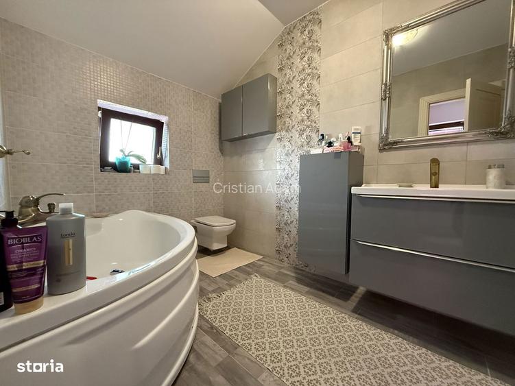 Va prezentam o proprietate deosebita, ideala pentru o familie numeroasa sau pentru cei care isi doresc confort, spatiu si independenta energetica. Pret 290.000 Se accepta si credit imobiliar Caracteristici generale: Suprafata utila: 175 mp Suprafata teren: 450 mp Regim de inaltime: P + E Garaj + locuri de parcare Curte amenajata cu spatii verzi Terasa generoasa pentru relaxare Eficienta energetica: Panouri fotovoltaice Baterii de stocare Certificat de prosumator costuri reduse la utilitati Se vinde complet mobilata si utilata: Mobilier din lemn masiv Elemente unice de mobilier sculptate in piatra Finisaje de calitate superioara Compartimentare inteligenta: Parter: Living spatios cu iesire directa pe terasa Bucatarie Birou Dormitor Baie Debara Etaj: Dormitor matrimonial cu baie proprie, dressing si balcon 2 dormitoare cu acces la balcon Baie de serviciu Localizare: Situata in cartierul Izvor, zona linistita, ideala pentru locuit Acces facil catre oras si puncte de interes Avantaje cheie: Spatiu generos 5 dormitoare Gata de mutare imediata Costuri reduse datorita sistemului fotovoltaic Design elegant, cu mobilier premium Pentru a programa o vizionare nu ezitati sa ma contactati -