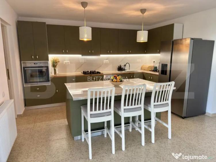 Va prezentam o proprietate de tip P+1, o constructie noua, finalizata in anul 2024, situata in Comuna Bucov, sat Chitorani, pe Strada Iuliu Maniu. Cu o locatie excelenta, imobilul se afla la doar 3 km de prestigiosul Domeniu Casa Timis si la 8 km de AFI Ploiesti. Casa este intabulata, libera de sarcini. Detalii despre Proprietate si Teren Suprafata Utila: 158 mp Terase Acoperite: 44 mp Suprafata Construita: 229 mp (133 mp la sol) Suprafata Teren: 488 mp, cu un front stradal de 16,5 metri Compartimentare: Practica si luminoasa Compartimentare (P+1) Parter: Parterul ofera un spatiu de zi amplu si functional: Living generos cu bucatarie open space (57 mp) Acces direct catre terasa acoperita (44 mp), ideala pentru relaxare sau servirea mesei in aer liber Dormitor/Birou (12 mp) Camera tehnica (7 mp) Grup sanitar cu dus (5 mp) Etaj: Etajul este dedicat zonelor de odihna si include: Suita matrimoniala (37 mp) cu baie proprie si dressing Dormitor secundar cu baie proprie (21,5 mp) Hol spatios (14 mp), care poate fi utilizat ca birou sau lounge Terasa acoperita Structura, Izolatie si Finisaje de Calitate Proprietatea beneficiaza de o structura solida si de solutii moderne pentru eficienta energetica: Structura: Fundatie din beton armat cu hidro si termoizolatie, planseu din beton armat si grinzi stratificate. Pereti framing multistrat. Invelitoare: Sarpanta din lemn cu membrana hidroizolanta si invelitoare din tabla retropanel. Izolatie Termica: Izolatie termica din EPS 80 de 10 cm, completata cu vata minerala de 20 cm, asigurand o constructie eficienta energetic. Tamplarie: Ferestre Salamander 4 Season cu profil PVC de 7 camere si sticla tripan de 44 mm. Finisaje: Interioare moderne cu parchet laminat si gresie. Obiectele sanitare sunt de la producatori de top (Kludi, Geberit). Exterior: Tencuiala decorativa siliconica si soclu placat cu piatra. Utilitati si Confort Casa dispune de toate utilitatile necesare si de un sistem de climatizare performant: Utilitati Complete: Gaze, apa si canalizare, precum si curent electric trifazat. Incalzire: Centrala termica pe gaz in condensare de 35kw si calorifere. Exista, de asemenea, posibilitatea de a monta pompa de caldura (curent trifazat). Climatizare: 4 aparate AC inverter WiFi instalate in dormitoare si living. Exterior si Amenajare Curte Curtea este complet amenajata si securizata: Gard: Gard din aluminiu pe fundatie de beton. Acces: Poarta auto cu pregatire pentru sistem de automatizare. Carport/Pergola: Spatiu acoperit pentru masina. Amenajare: Curte pavata cu piatra de munte, gazon si pomi fructiferi. Echipare si Dotari Incluse Proprietatea se vinde partial echipata, oferind un avantaj imediat: Bucatarie: Moderna, realizata la comanda, cu insula si sistem soft-close, complet utilata cu cuptor electric, hota, masina de spalat vase si chiuveta cu tocator. Incluse in Pret: Bucataria echipata, cele 4 aparate AC, corpuri de iluminat si accesorii decorative (rulouri ferestre, draperii, oglinzi, suporturi dressing, etc.). Optional: Casa se poate vinde mobilata complet, conform fotografiilor. Pentru mai multe detalii si programarea unei vizionari, va rugam sa ne contactati. Cod oferta / ID BLITZ: P155144 Id intern: P155144 Numar niveluri imobil: 1 Numar Bai: 2 Curent Apa Canalizare Gaz Clima