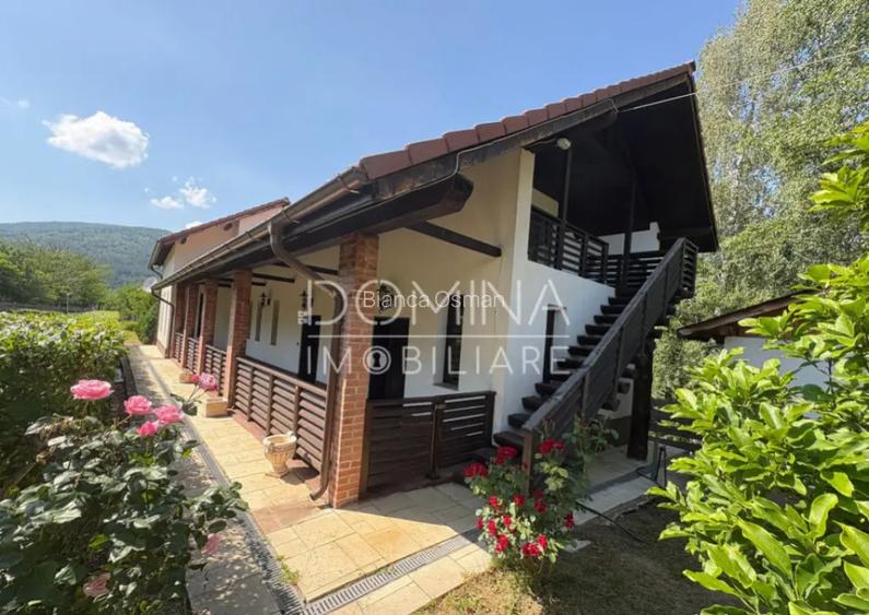 ID/ COD oferta: P1050 DOMINA IMOBILIARE va propune spre vanzare un domeniu aparte, situat in padurea Bumbesti-Jiu, undeva la poalele muntilor, intr-un loc unde linistea si verdele naturii se impletesc firesc cu confortul unei proprietati amenajate cu suflet. Este locul unde racoarea padurii, mirosul pamantului si aerul curat de munte se transforma intr-un refugiu de poveste, cu un farmec ce iti imbie fiecare zi. Domeniul se intinde armonios pe o suprafata totala de 10.408 mp si este alcatuit din mai multe proprietati asezate ca intr-o poveste: prima parte este o vie atent ingrijita, cu o suprafata de 3.963 mp, urmata de o livada roditoare de pomi fructiferi, desfasurata pe 4.233 mp, iar la final, pe o suprafata de 2.212 mp, gasim constructiile care dau viata locului. Terenul este atat intravilan, cat si extravilan, oferindu-ti libertatea de a dezvolta visul tau, fie ca il pastrezi ca o oaza privata, fie ca il transformi intr-o destinatie turistica de exceptie. Constructia principala este o locuinta cu regim de inaltime S+P+M, cu o suprafata totala de 289 mp, finalizata in anul 2016, pastrandu-si farmecul rustic, dar aducand in acelasi timp un accent modern, cu detalii boeme care creeaza o atmosfera calda si primitoare. La parter gasim un living generos cu semineu, bucatarie mobilata si utilata, o baie cocheta, terasa ampla pentru momente de relaxare si accesul direct la beciul racoros, perfect pentru vinuri sau provizii traditionale. La mansarda se afla zona de noapte, cu un hol generos, living intim, trei dormitoare luminoase, ferestre VELUX care aduc cerul mai aproape si doua balcoane cu vedere spectaculoasa spre munti si dealuri. La acest nivel gasesti si cea de-a doua baie, practica si bine compartimentata. In total, proprietatea cuprinde sapte camere, trei bai, trei balcoane si o terasa toate atent finisate cu parchet laminat, gresie, faianta, tamplarie lemn si aluminiu cu geamuri termopan, usa de intrare din lemn masiv si izolatie exterioara care asigura confort termic pe tot parcursul anului. Casa dispune de toate utilitatile necesare: curent electric (inclusiv trifazic), apa curenta, fosa septica, centrala electrica, cu posibilitate de racordare la gaze, cablu TV si internet se vinde complet mobilata si utilata. Langa locuinta principala, domeniul iti ofera un spatiu de relaxare, desprins din povesti: o bucatarie de vara complet utilata, un foisor traditional din lemn, loc ideal pentru mesele cu familia si prietenii, plus o plita si un gratar zidit din caramida, unde retetele traditionale isi gasesc gustul autentic. Curtea este frumos amenajata, cu alei pavate, arbusti ornamentali, flori multicolore, leagane si bancute asezate strategic pentru a admira natura in tihna. Toata proprietatea are o deschidere la strada de aproximativ 100 m.l., iar drumul de acces, chiar daca neamenajat in totalitate, se intinde paralel cu proprietatea, oferindu-ti un plus de intimitate si accesibilitate. Pe langa spatiul de locuit, acest domeniu iti ofera un potential de dezvoltare impresionant: terenul liber poate fi folosit pentru constructia unor cabane de inchiriat, un complex turistic, o zona de glamping sau chiar o piscina infinity care sa imbratiseze panorama muntilor si a orasului Bumbesti-Jiu. Este locul ideal pentru a construi un mic sat de vacanta, o pensiune cu farmec boem sau pur si simplu pentru a crea un refugiu de familie, un colt de rai unde traditia, confortul si natura se intalnesc in cel mai armonios mod. Domeniul acesta nu este doar o proprietate este un stil de viata, o oaza care respira calm si frumusete in fiecare colt, un loc cu suflet si cu poveste. Daca iti doresti mai mult decat o casa, daca vrei o investitie cu potential real sau un loc care sa-ti devina acasa, atunci aici s-ar putea sa gasesti exact ce cauti! Vrei sa vezi mai multe oferte similare? Ne poti contacta la numarul de telefon